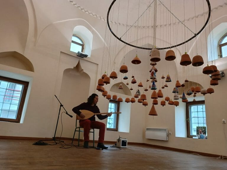 The first of these, LOOK AT ME, involved making a thousand ceramic eyes. The invitation, "Come see us with different eyes and find out what might match you," generated many interactive responses from the public attending the event. Visitors were invited to be photographed with ceramic eyes, and the result was the creation of many portraits that chronicle this interaction and juxtaposition. The next project, ASCOLTAMI, is a symbolic multisensory social awareness exhibition on diversity and disability. Its goals were the activation-participation of other facilities in the city, Greece and foreign countries to create two large sound sculptures made of ceramic bells, which were housed in the area of the vaulted Ottoman monument "Turbes." This project was completed with the cooperation of many local people and international artists.