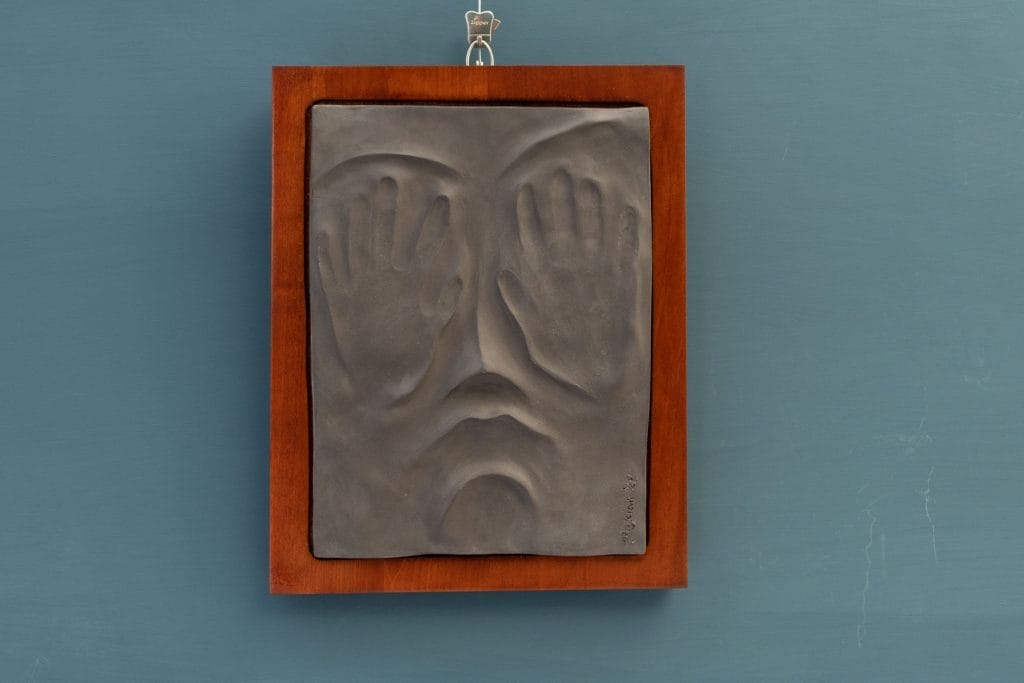 Today it is difficult to perceive the daily reality that escapes at the mad speed of new media. The artist is called upon to restore forms of inner peace to the viewer, recalling the past of material forms and gestures to protect the future of art. The work represents the artist's hands stopping the frenetic violence that strikes the viewer's eyes.