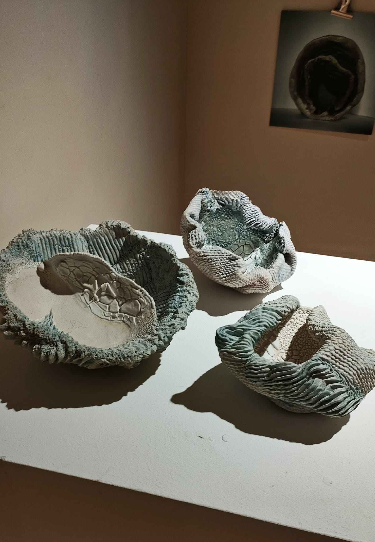 In molte opere esposte è presente il richiamo a quell’evanescenza della vita quale espressione di un’infinita ricerca di quella sottile linea tra potenzialità e vulnerabilità, origine e fine, eternità, vita e memoria. Catturare e preservare la bellezza effimera della natura un concetto concentrato e stilizzato dal contenuto complesso della natura umana e del suo ‘pensare’. La “terra” che plasmata modellata diviene espressione per una comunicazione poetica. La materia stessa in molte opere viene accentuata dagli stessi colori terrosi con una grande forza espressiva e garbo. Lo stimolo creativo proposto, ben recepito nelle opere esposte, veicola un’esperienza emotiva, sollecitando tutti i presenti al Festival ad una riflessione in merito all’importanza di tutelare la nostra Madre Terra.